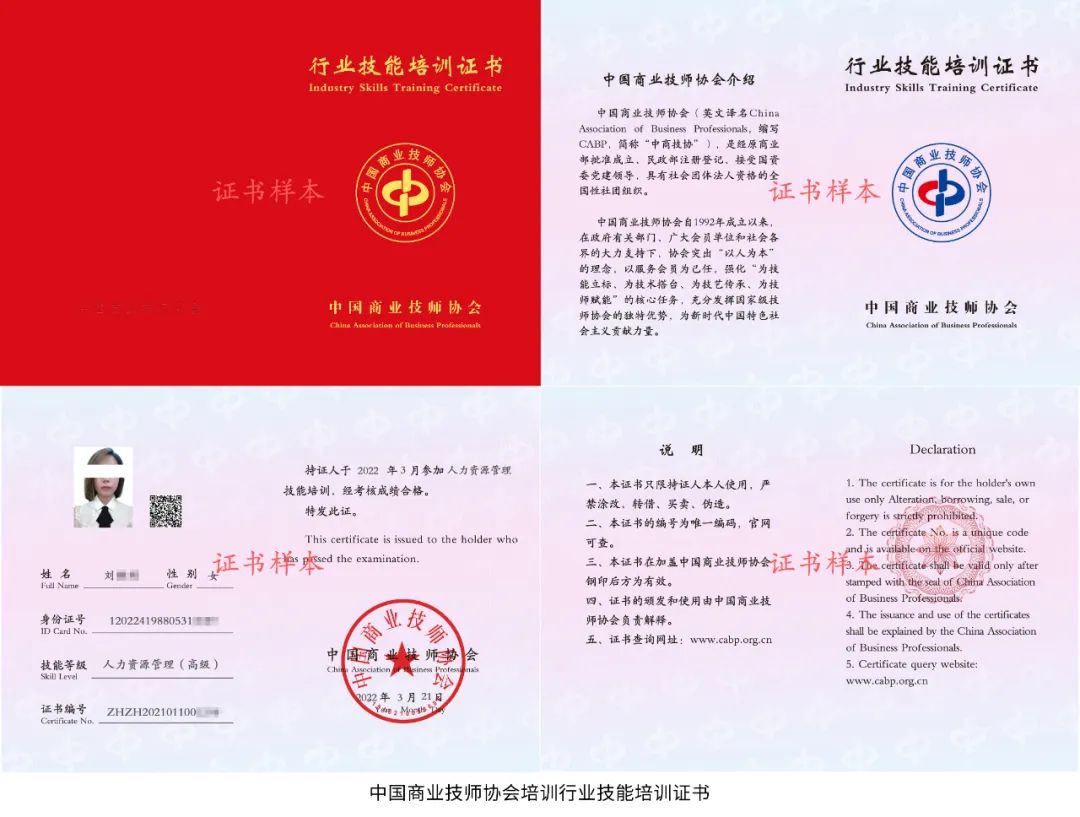 本证书由中国商业技师协会颁发,作为持证人参加相关培训,能力水平评价和维持就业的依据。本证书在中国商业技师协会官方网站(http://www.cabp.org.cn)查询,全国通用。