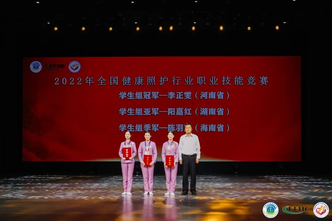 根据《人力资源和社会保障部关于开展2021年全国行业职业技能竞赛的通知》,中国研究型医院学会与中国就业培训技术指导中心于2022年8月4日至7日在洛阳举办了主题为“康养新职业 生活新品质”的全国健康照护行业职业技能竞赛。经过第三方裁判公平公正评判,仲裁监督严格执纪,全程录像监控和盲评打分,现将决赛成绩公布如下: