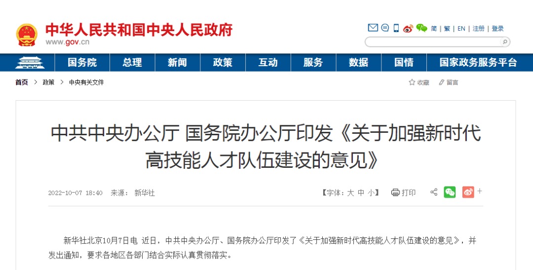 《关于加强新时代高技能人才队伍建设的意见》