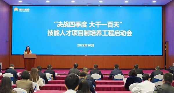 10月8日,四川省首个大型企业技能人才项目制培养工程在四川能投举行启动会。会议旨在贯彻落实中共中央办公厅、国务院办公厅《关于加强新时代高技能人才队伍建设的意见》,响应四川省委、省政府“决战四季度、大干一百天”的号召,深入推进“技能四川”行动,加大政策资金投入,强化人才要素保障,实现技能强企、技能兴业,全力以赴帮助稳住市场主体。