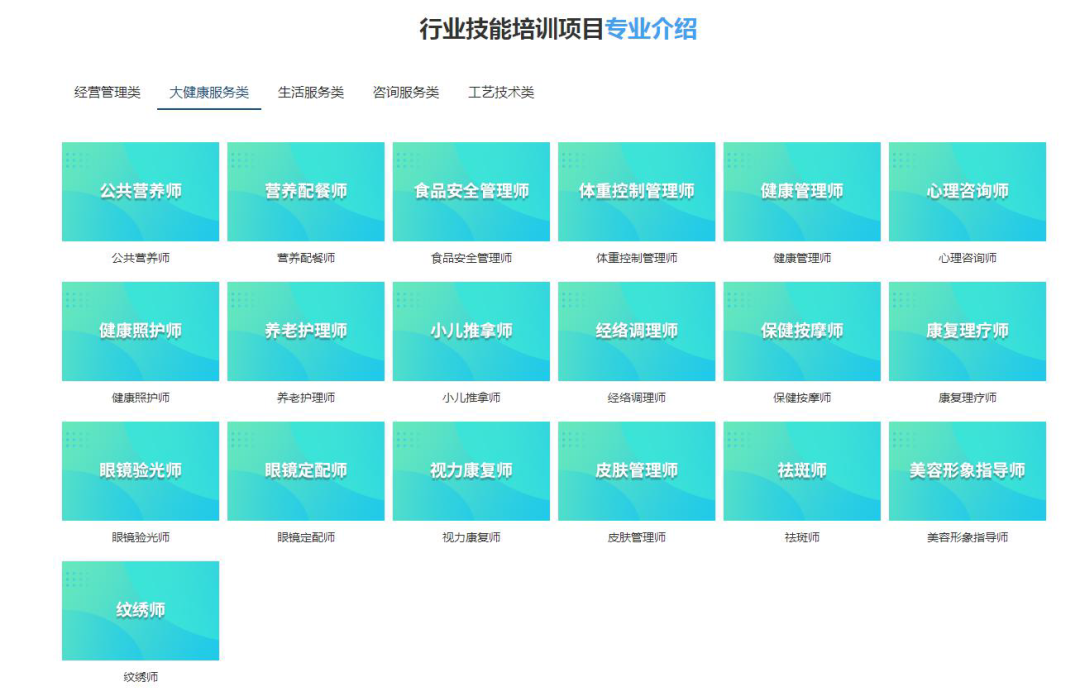 目前有:组织经营管理类、大健康服务类、生活服务类、咨询服务类、工艺技术类各领域专家学者开展学术研究,研发各类适用性、实用性、课程体系和实操技能应用课程,开展线下培训超1000期,组织线上培训学员超数十万人服务于“为技能立标、为技术搭台、为技艺传承、为技师赋能”的核心任务。