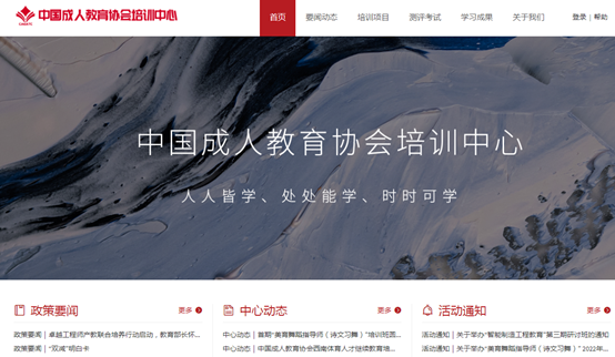 中国成人教育协会培训中心是在国家事业单位登记管理局注册、由中国成人教育协会出资举办的事业单位法人实体,中国成人教育协会培训中心利用所具备的办学许可,面向社会开展非学历教育培训活动,为学习者提供各类专项能力培训、学习成果测评及有关咨询服务。