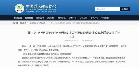 中共中央办公厅 国务院办公厅印发《关于推动现代职业教育高质量发展的意见》明确工作要求: