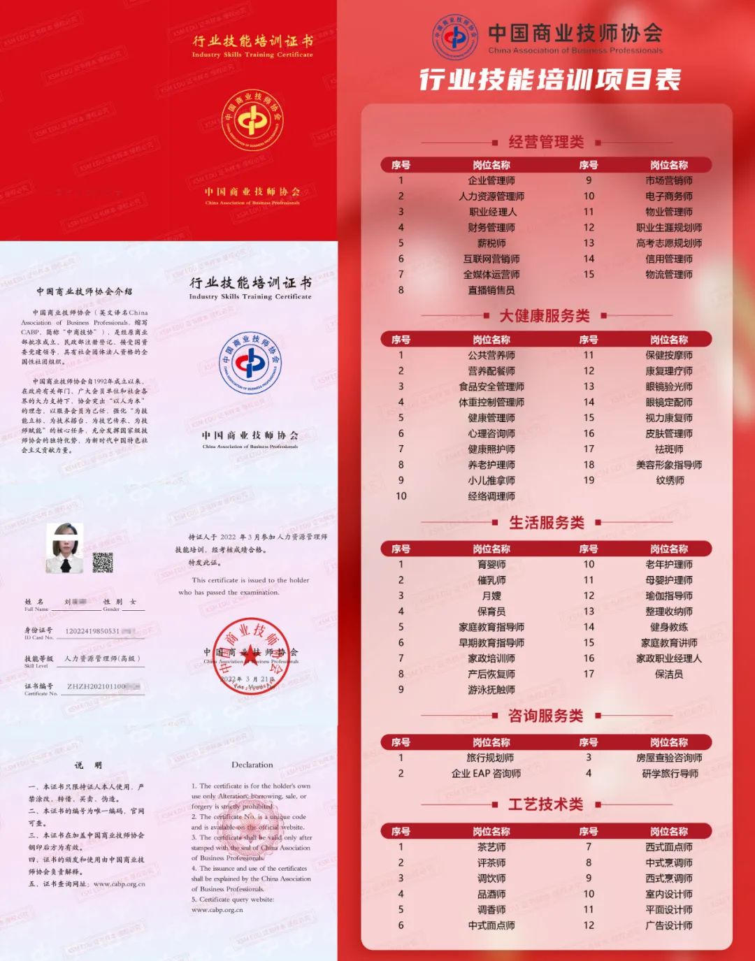 中国商业技师协会 | 行业技能培训项目各专业一览表(最新版)