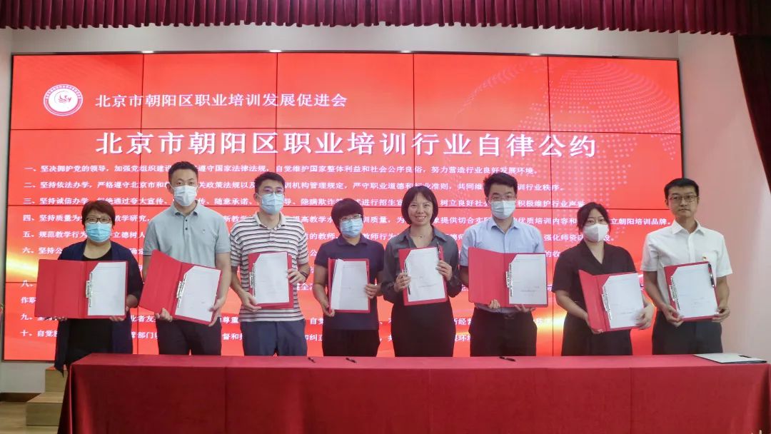 会上,举行了北京市朝阳区职业培训发展促进会揭牌仪式,组建成立了职业培训专家委员会,宣读并签署了《朝阳区职业培训行业自律公约》。